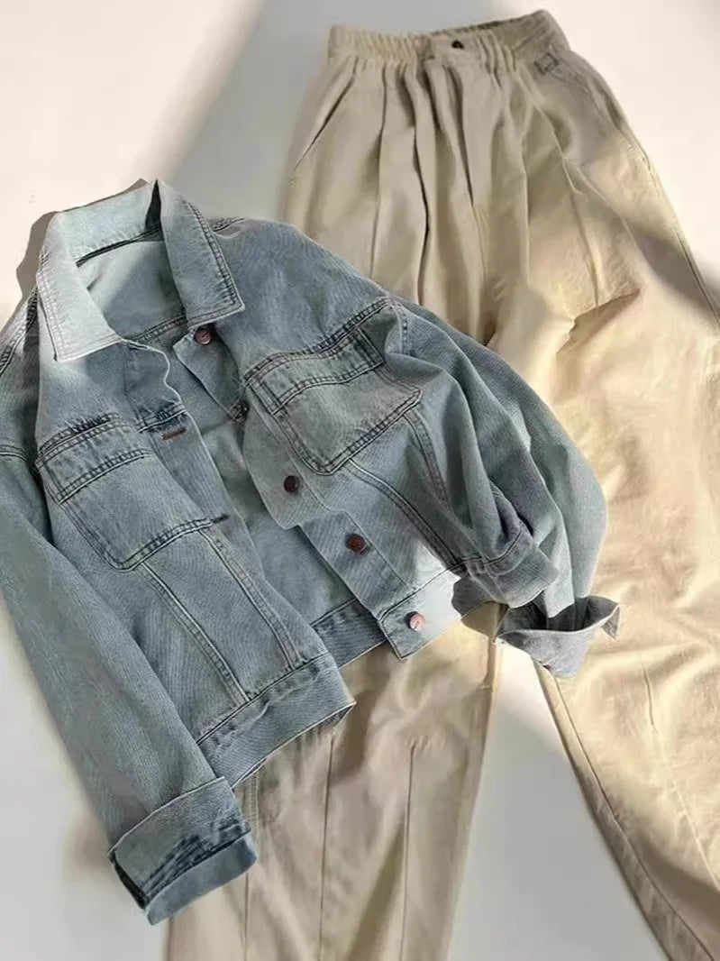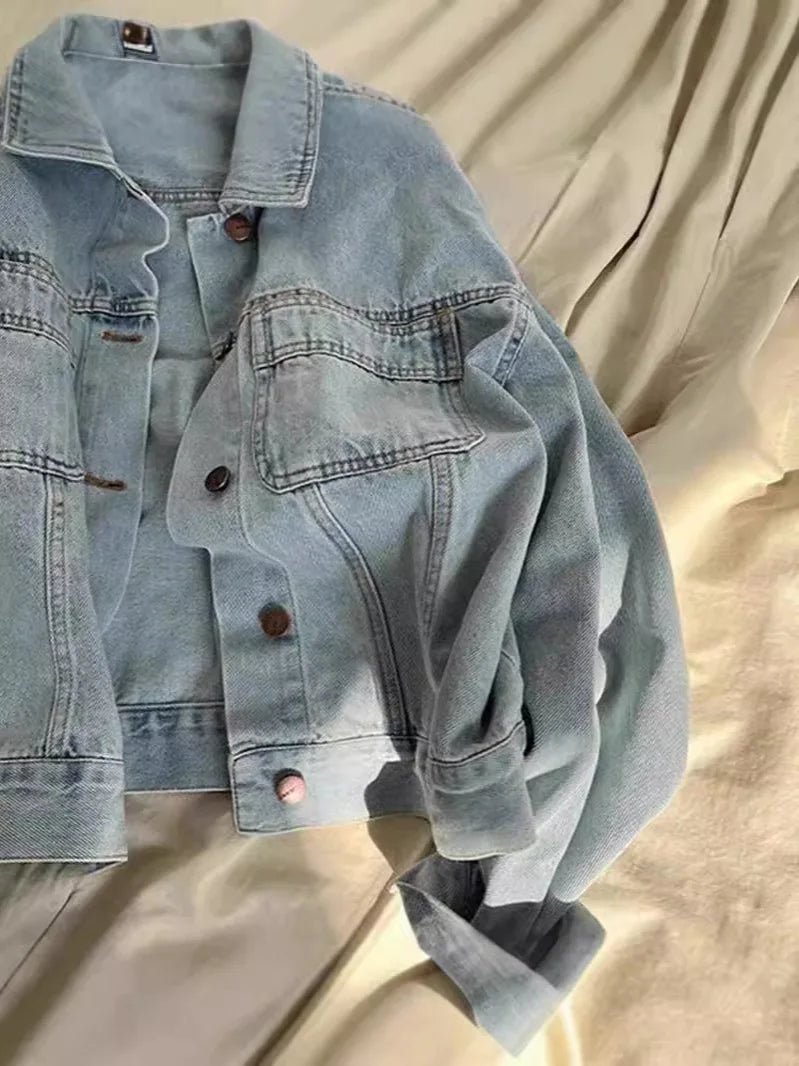 30/5000 Spring and Autumn Women Thin Korean Loose Short Long-sleeved Jacket European Washed Cotton Retro Denim Jacket for Women