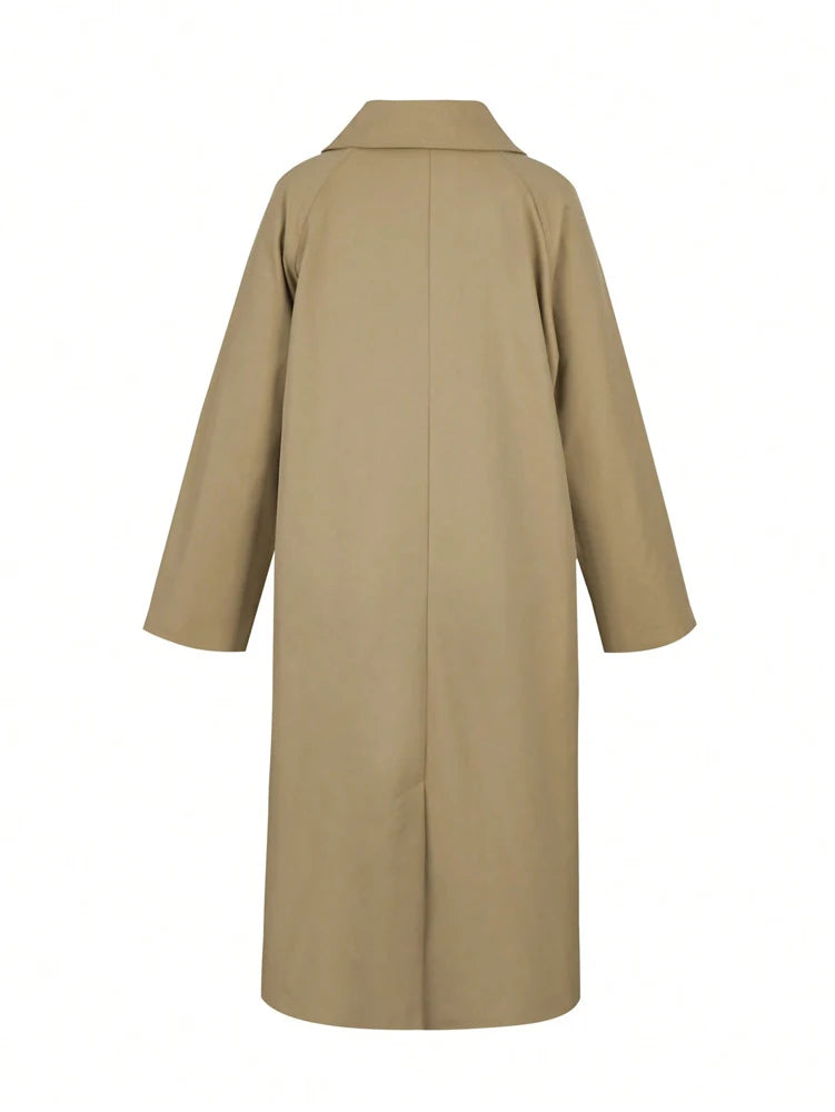 The solid pattern and front-buttoned design make this trench a timeless addition to any wardrobe.