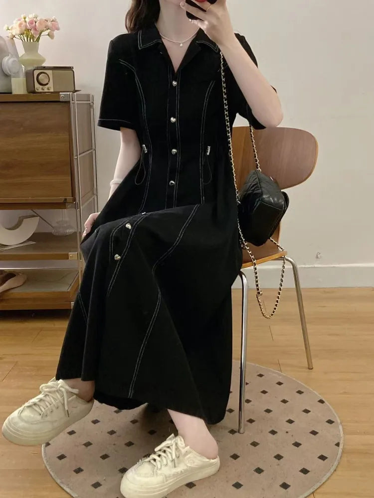 This plus-size summer dress features a French design aesthetic, offering a chic and stylish look for plus-sized women.